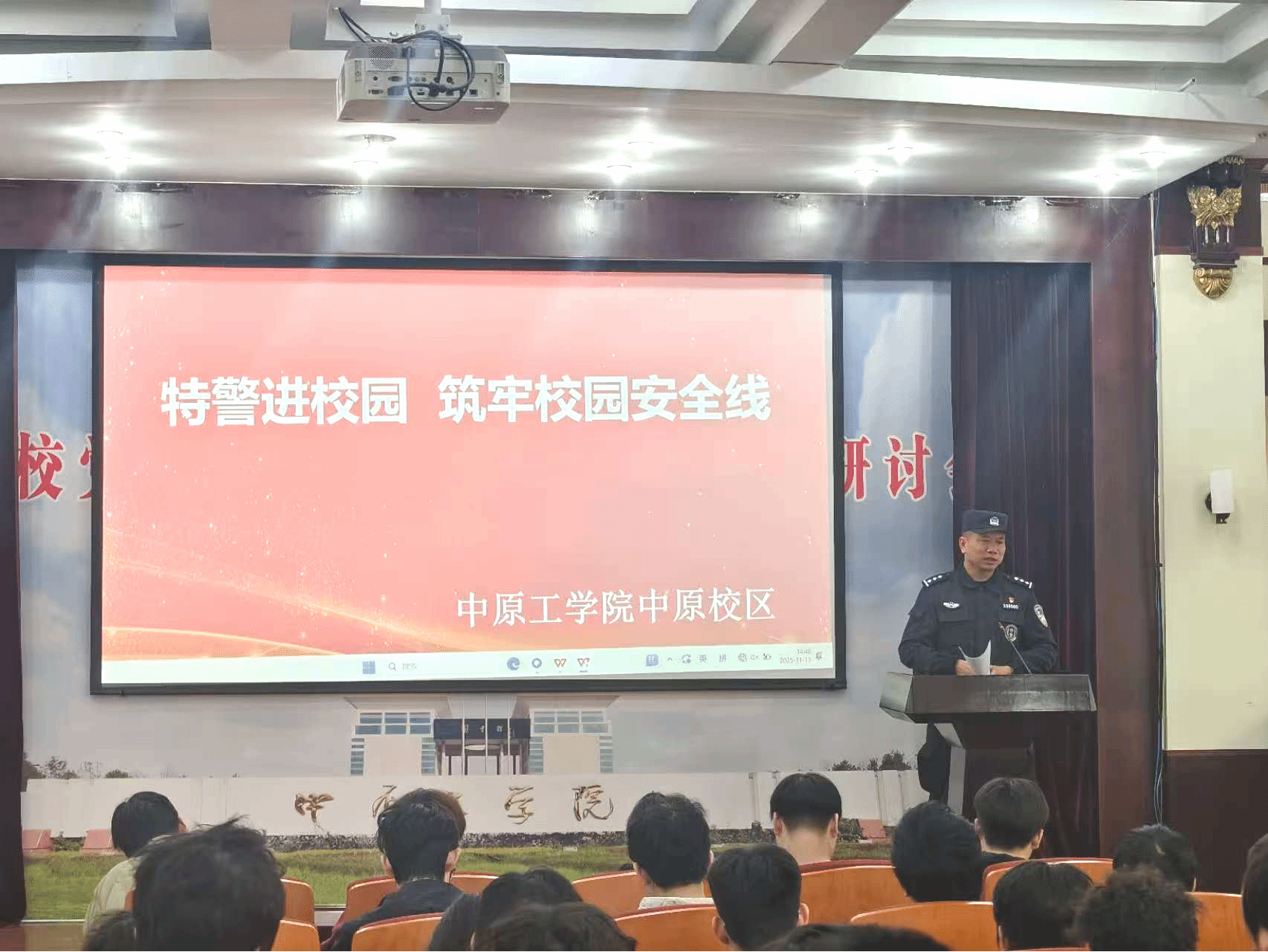 在图书馆报告厅进行活动启动仪式,中原校区管理委员会副主任、软件学院党委书记王雪芳和中原校区管理委员会执行主任、软件学院院长刘卫光出席会议并致辞。启动仪式后,特警支队的两名警官给学生进行校园防恐安全知识培训,结合近期全国校园安全典型案例,剖析涉校暴力事件特征与防范要点,让师生在沉浸式教学中增强风险识别与自救互救能力。
