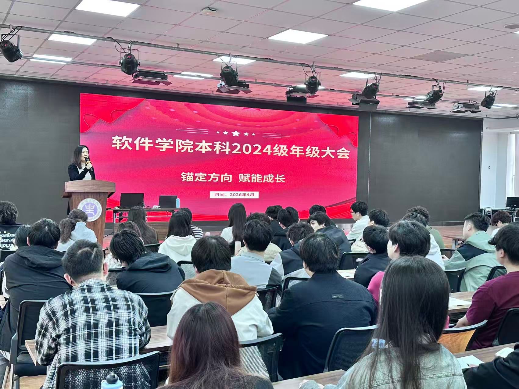 为帮助软件学院学子明晰学业方向、筑牢学风根基,4月21日下午,软件学院召开创优良学风动员会。软件学院党委书记王雪芳、副书记王冰、2024级辅导员袁安榜、袁彧以及500名学生共同参与。